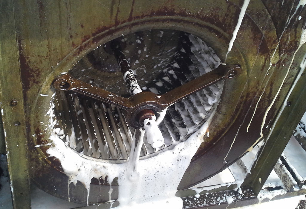 Mediante una máquina especializada que cuenta con una larga manguera, podemos llegar allí donde esté su turbina y gracias a un cepillo rotativo y espuma activa, la limpiamos totalmente de grasa.